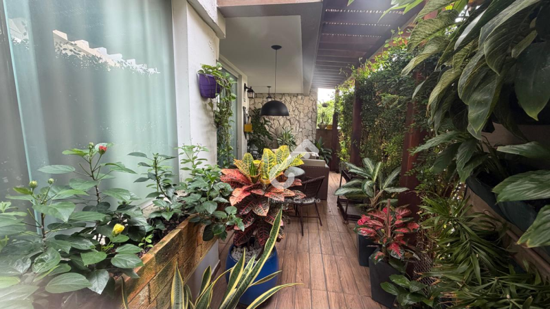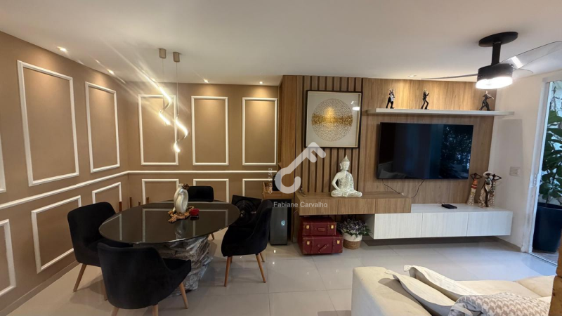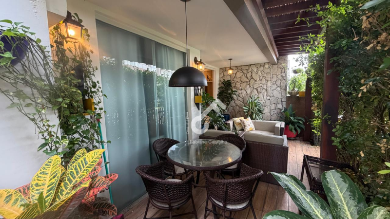 Garden térreo com 3 quartos sendo 1 suíte com closet, sala em 2 ambientes, cozinha planejada, área de serviço, totalmente climatizado, sanitário social e serviço e garagem.
