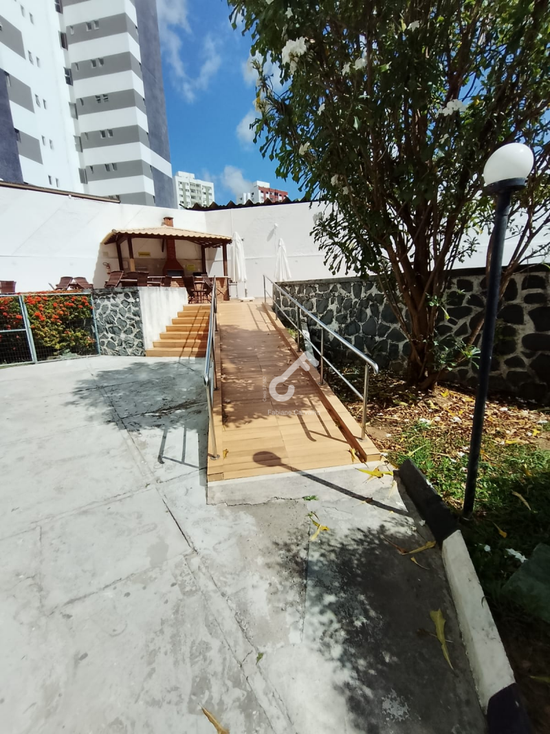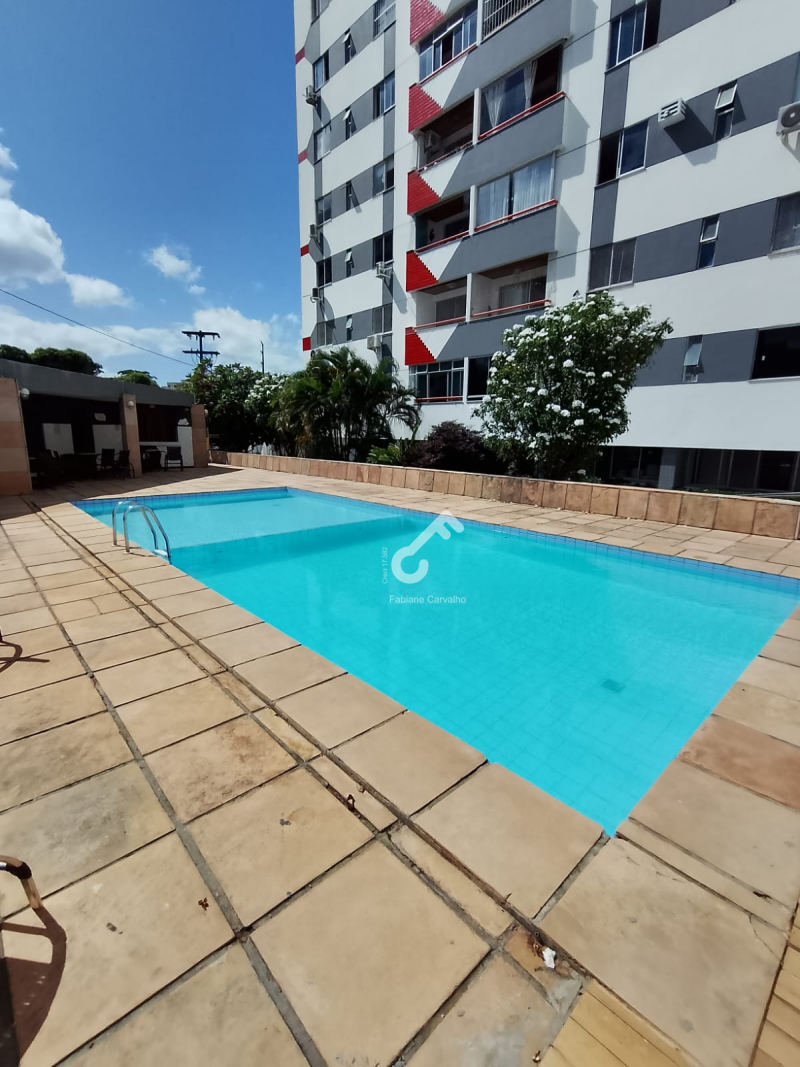 Condomínio fechado com infraestrutura, piscina, área de lazer, elevador e quadra poliesportiva.