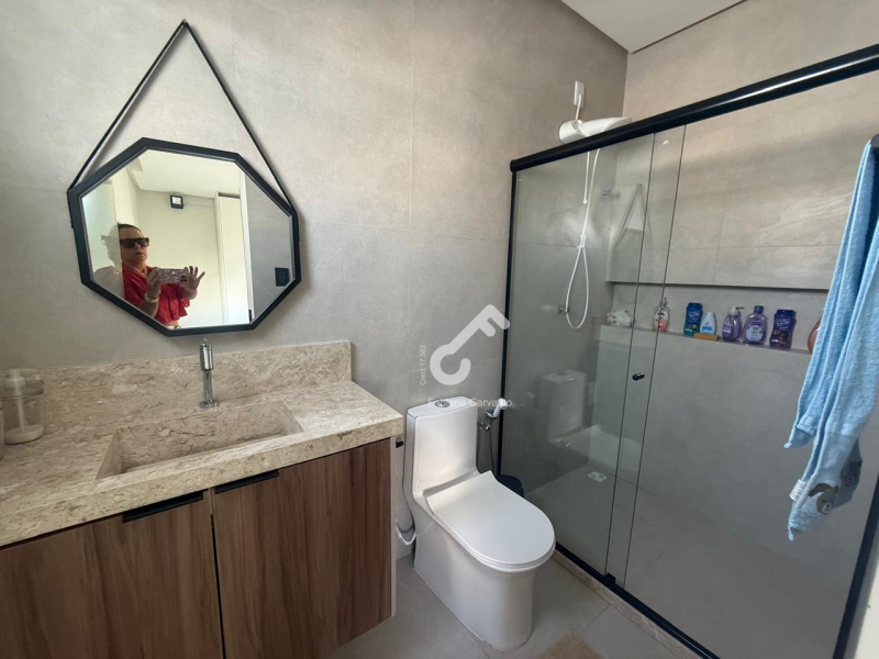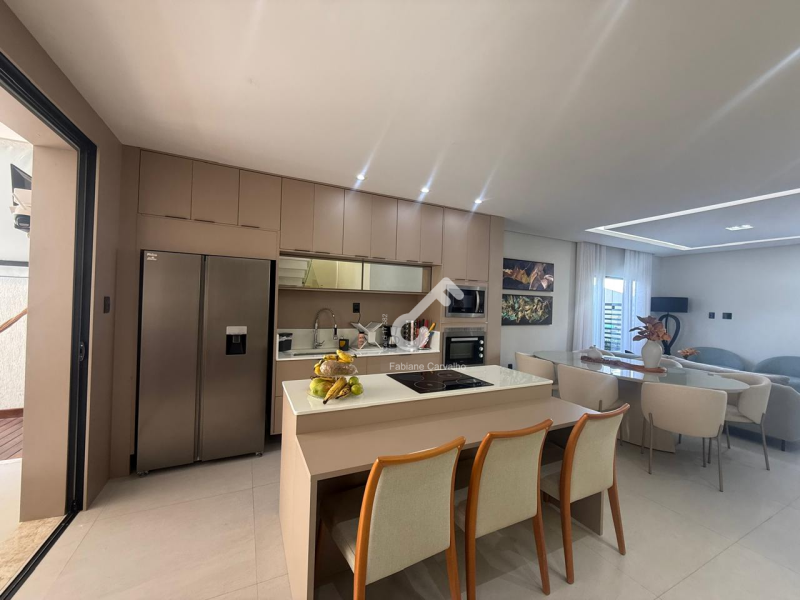 Duplex ALTO PADRÃO (porteira fechada) com fino acabamento, porcelanato, composto de 4 suítes sendo 1 suíte térrea e 3 suítes superiores, closet, varanda, sanitários social, sala num conceito aberto, cozinha planejada, área de serviço, área gourmet, ENERGIA SOLAR e garagem. Terreno com 250,50m² e 183,27m² de área construída.