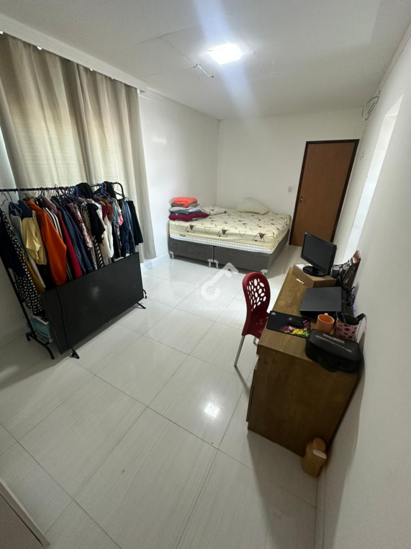 Sala ampla em 2 ambientes, 4 quartos sendo 1 suíte superior e 1 quarto térreo, sanitário social, cozinha ampla, área de serviço, depósito, quarto de visitas externo com entrada independente e garagem.