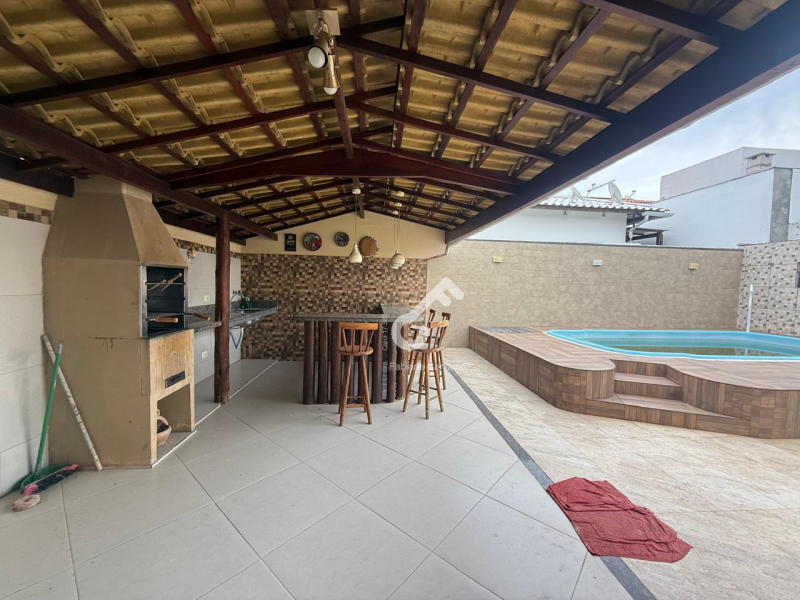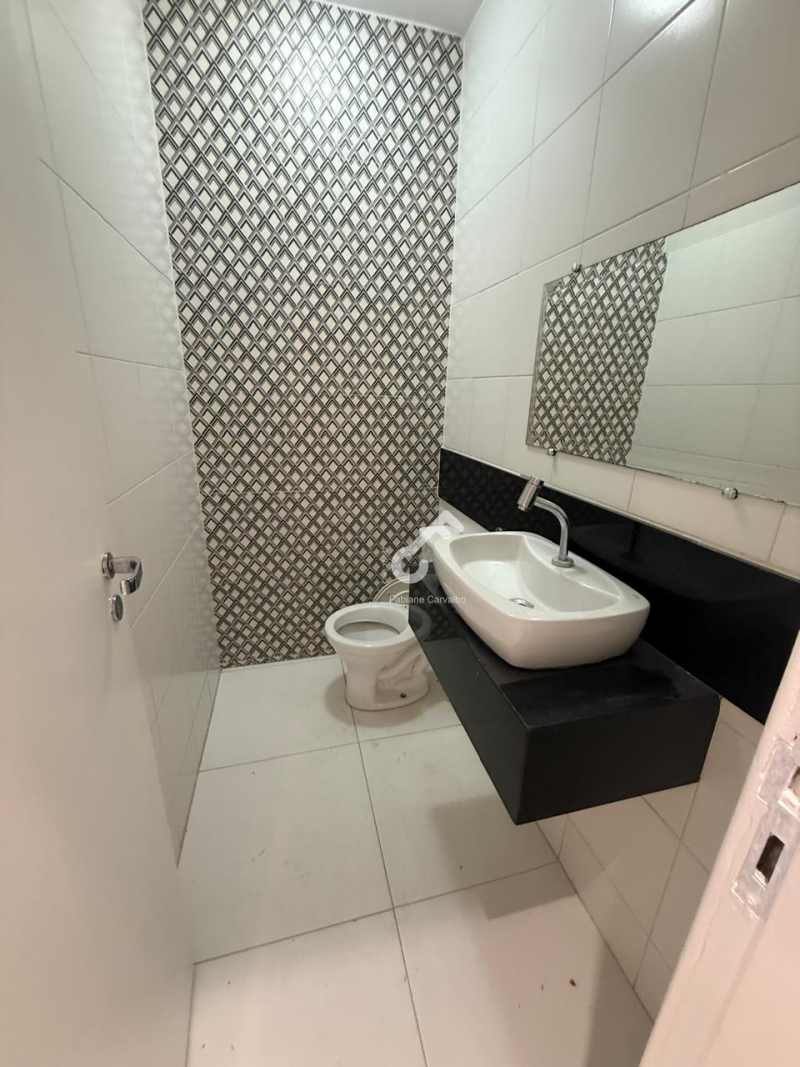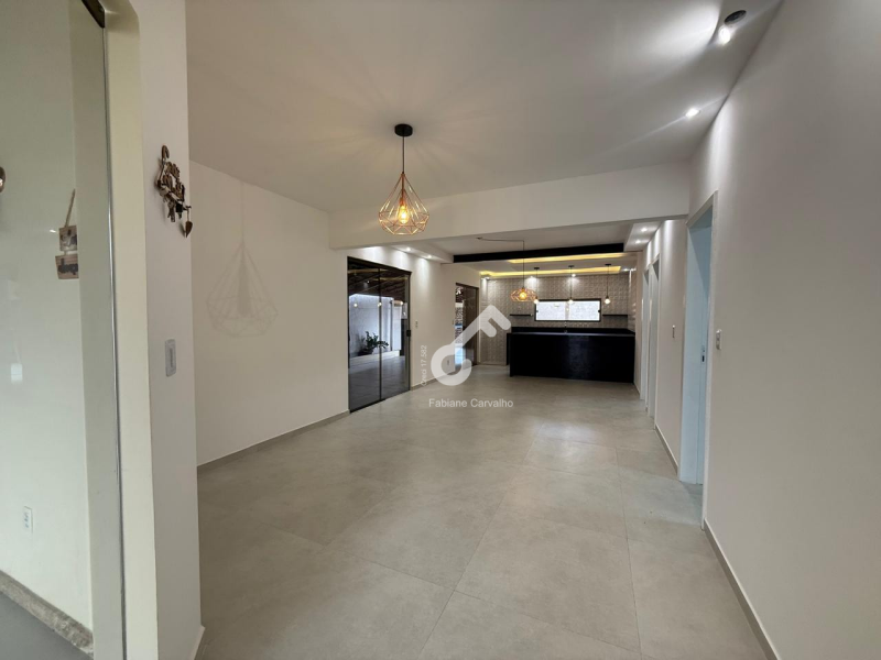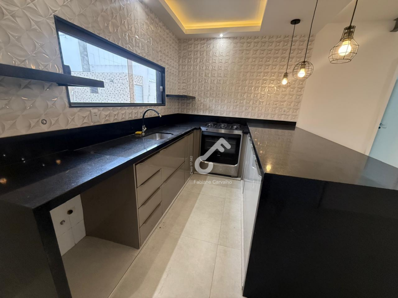 Casa térrea em condomínio fechado, fino acabamento, 3 suítes, cozinha americana com armários, sala ampla, lavabo, área de serviço, área gourmet, piscina e garagem.