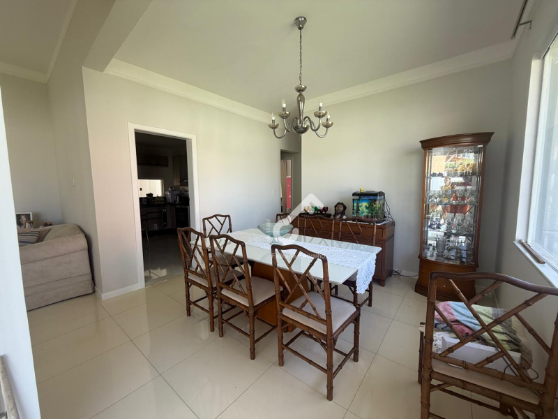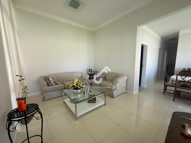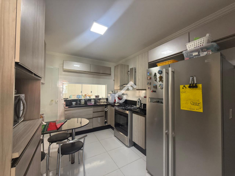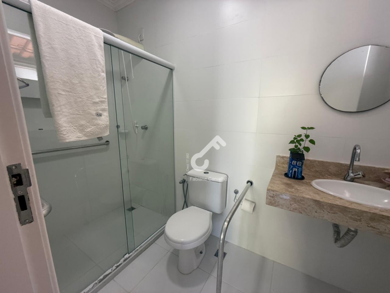 Sala em 2 ambientes (TV e jantar), 3 quartos sendo 2 suítes, closet, varanda, sanitário social e serviço, cozinha planejada, área de serviço, despensa, depósito, ampla área externa totalmente gramada e garagem.