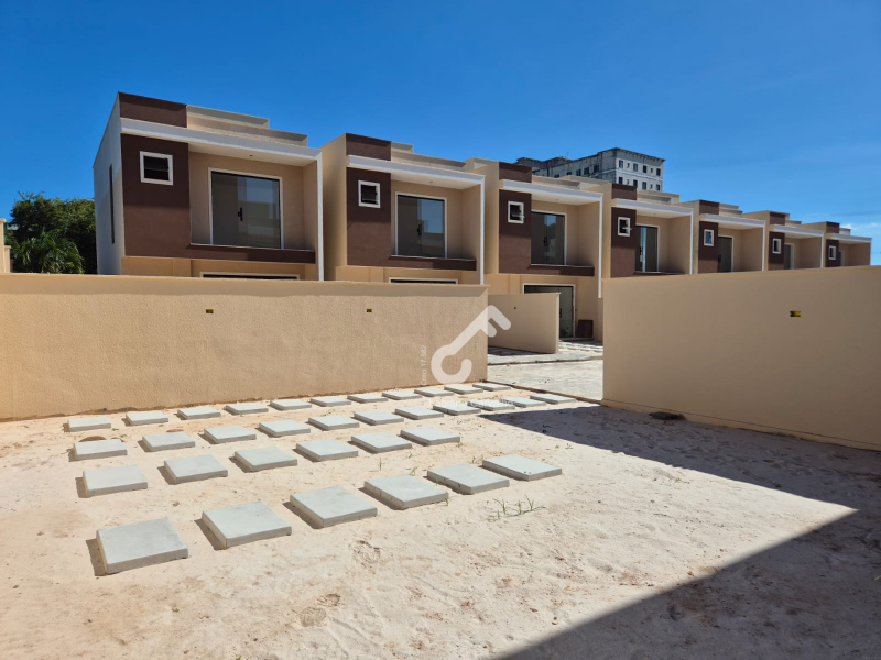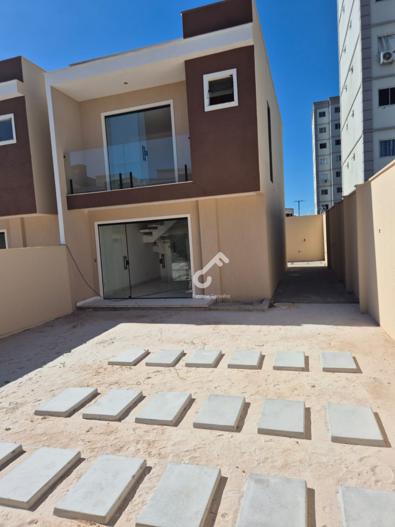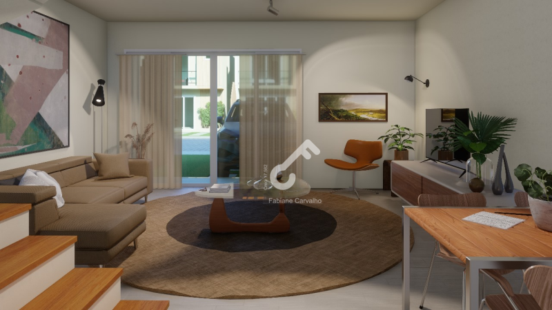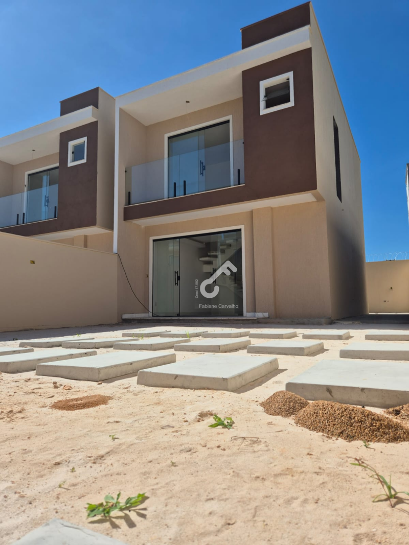 Casas duplex NOVAS em condomínio fechado com excelente padrão de acabamento, composta de 4 quartos sendo 1 suíte e 1 quarto térreo, sala num conceito aberto, cozinha, área de serviço, sanitário social e garagem. São 102m² de área construída.