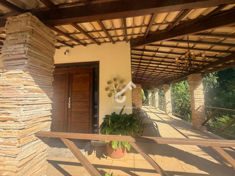 Sítio com casa duplex todo avarandado em condomínio fechado com 3 suítes sendo 2 suítes térreas e 1 suíte máster superior com hidro, sala ampla, cozinha com armários, área de serviço, 2 dependências, sanitário social, área gourmet, área com plantações, piscina e garagem.