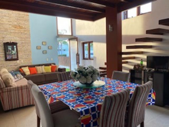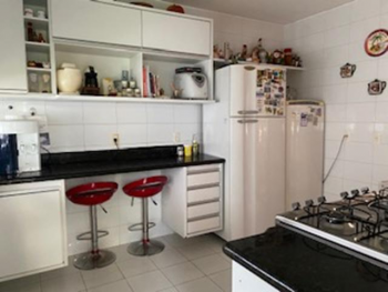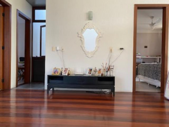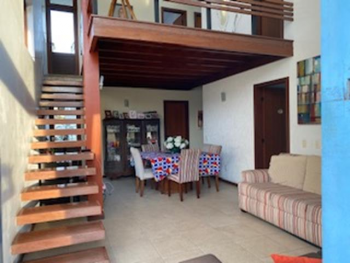 Duplex ALTO PADRÃO com 4 quartos sendo 3 suítes e 1 quarto térreo, ar-condicionado, sala ampla em 2 ambientes com pé direito duplo, mezanino, varanda, banheiro completo, cozinha com armários, área de serviço, dependência completa e garagem. Área total de 400m² e construída de 250m² aproximadamente.
